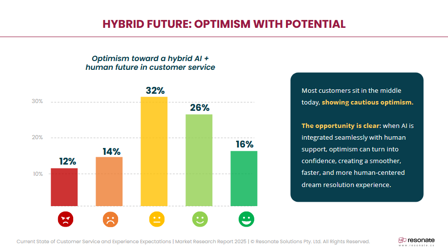 Customers don’t necessarily love AI, but they value time a lot. If AI genuinely makes their lives easier, they’ll adapt quickly. - Resolution builds trust.